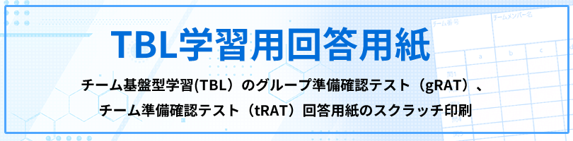 医療系大学様などで取り入れられている学習方法で、学習グループまたはチームで取り組ませる(グループ準備確認テスト(gRAT)、チーム準備確認テスト(tRAT))にはスクラッチ印刷が用いられています。
